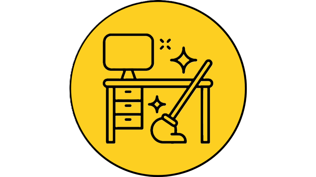 ● Clean desks, chairs, and shelving